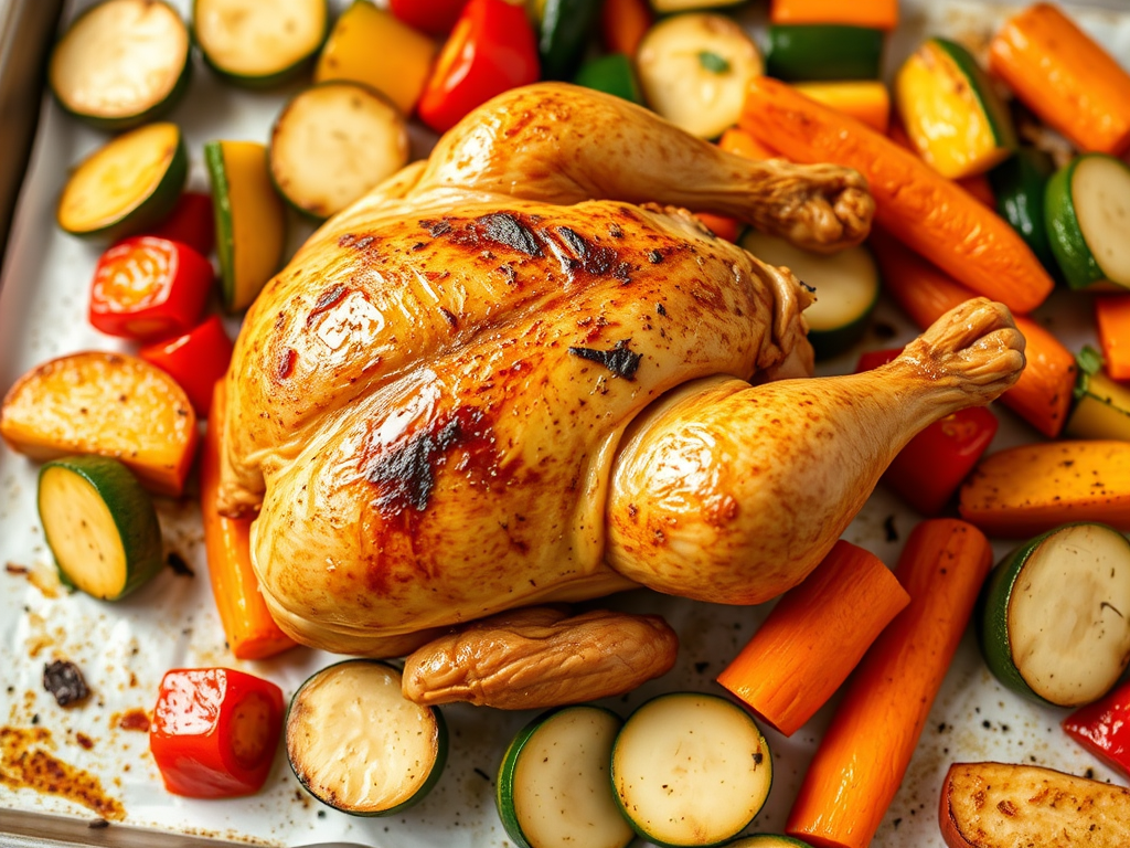 Step 5: Roast in the preheated oven for 28–32 minutes, or until the chicken skin is golden and crispy and the internal temperature reaches 165°F. The vegetables should be tender and slightly charred at the edges.