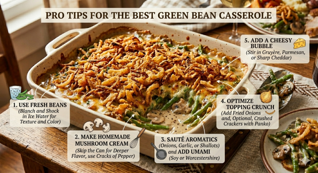 - Use fresh green beans (blanched) instead of canned for better texture and nutrients.