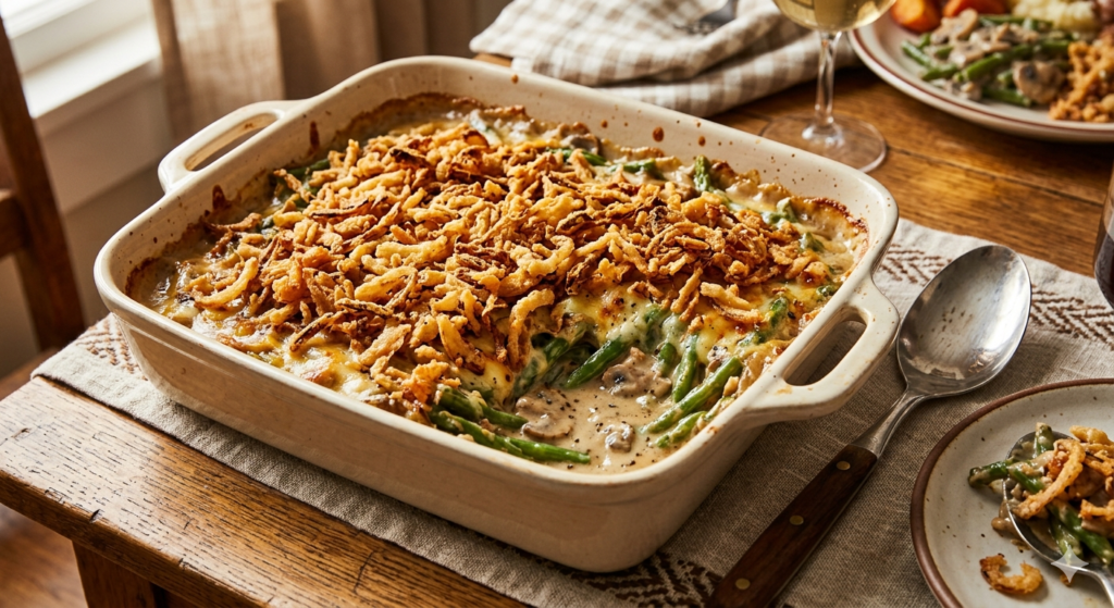 Campbell’s Green Bean Casserole is one of those timeless recipes that deserves a permanent spot in your cooking rotation — whether it’s the holidays, a Sunday dinner, or any night you need a little warmth on the table.